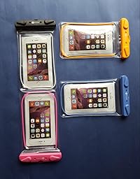 Waterproof Case, 4 Pack F-color™ Clear Transparent TPU Perfect for Rafting, Kayaking, Swimming, Boating, Fishing, Skiing, Protect iPhone 6S Plus, Galaxy S6, Motorola etc. Orange Blue Black Pink